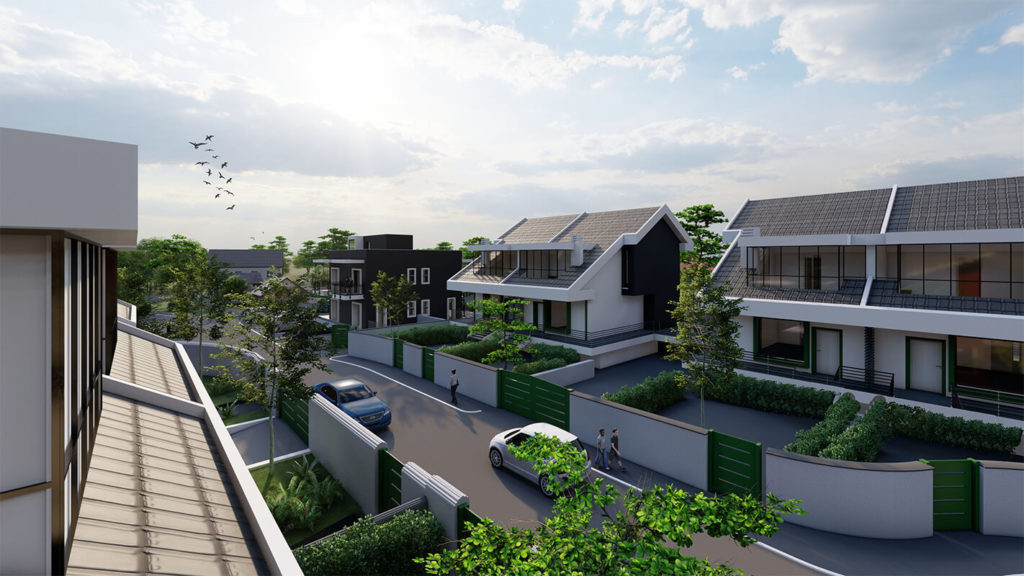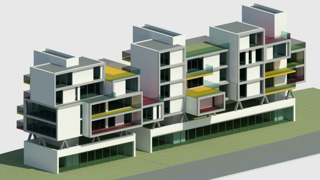 L’intervento si compone di 9 edifici con un’altezza variabile tra i 5 ed i 6 piani a destinazione residenziale oltre il piano terra a destinazione commerciale ed il piano interrato ad autorimessa che è un tutt’uno con i 9 edifici.