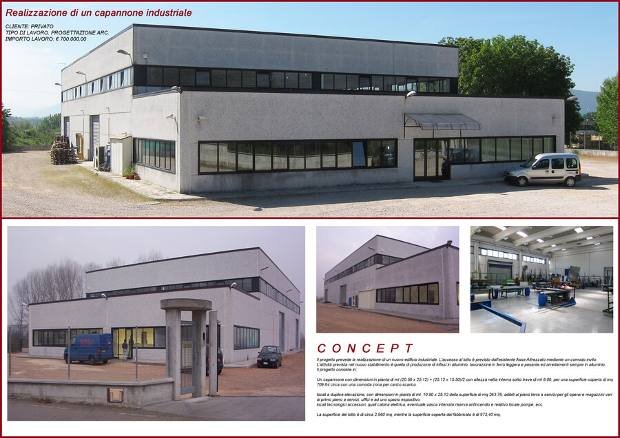 Il progetto prevede la realizzazione di un nuovo edificio industriale. L’accesso al lotto è previsto dall’esistente Asse Attrezzato mediante un comodo invito.
